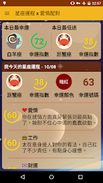 星座運程 X 愛情配對は Android 用のフルバージョンのアプリで、 「ライフスタイル」カテゴリに属しています。